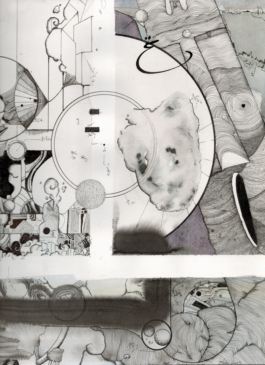 Feutres fins, encre de Chine et aquarelle sur papier