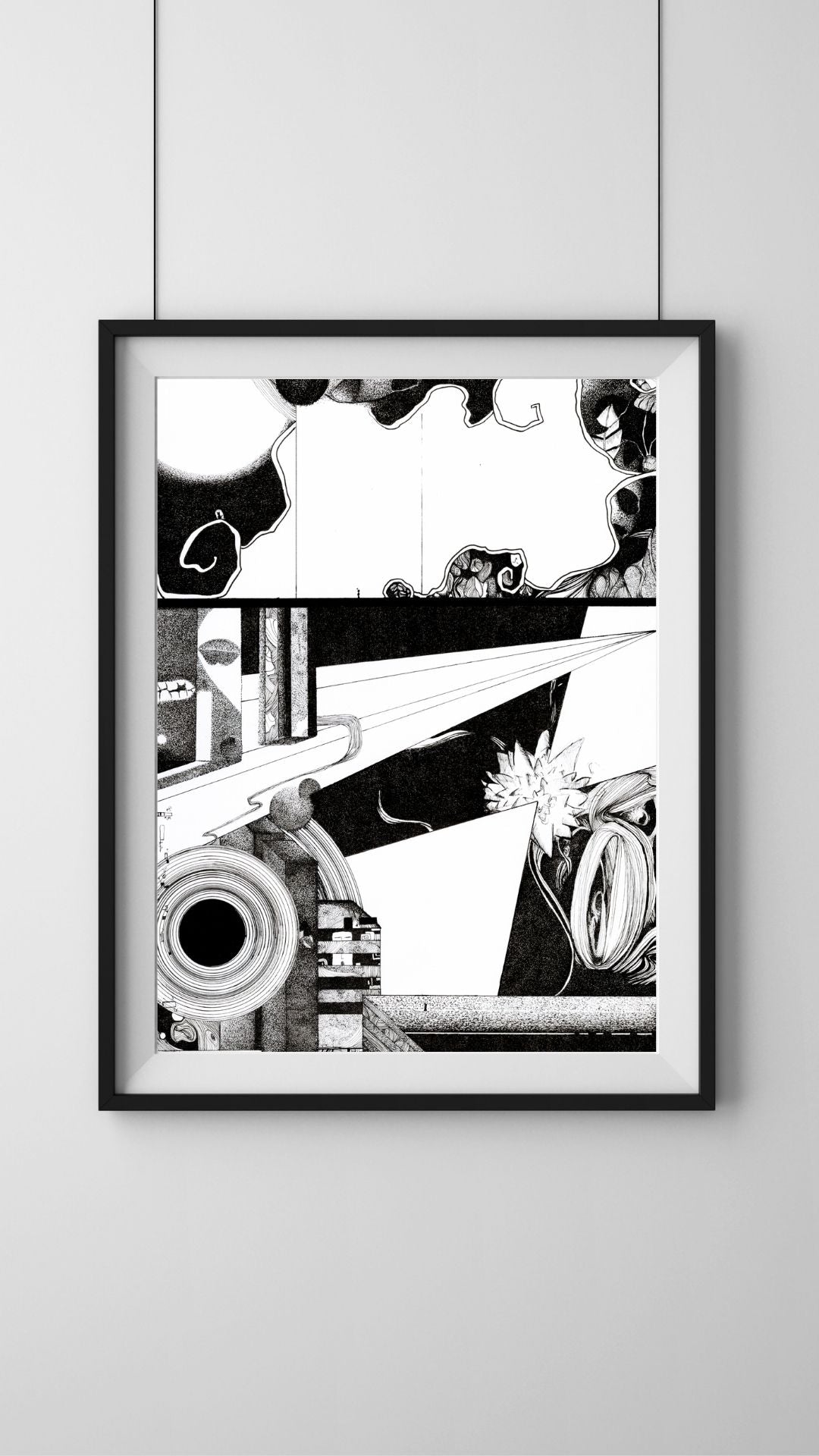 Feutres fins et crayons de couleur sur papier, pointillisme